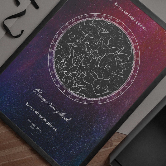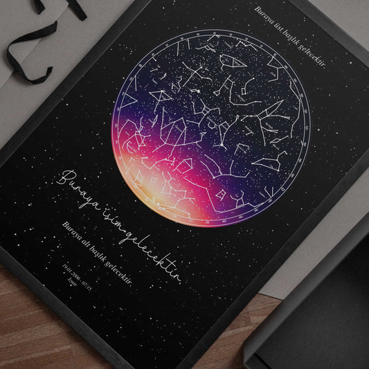 İNDİRİM 20%Kişiye Özel Çerçeveli Gökyüzü Haritası – Düşler