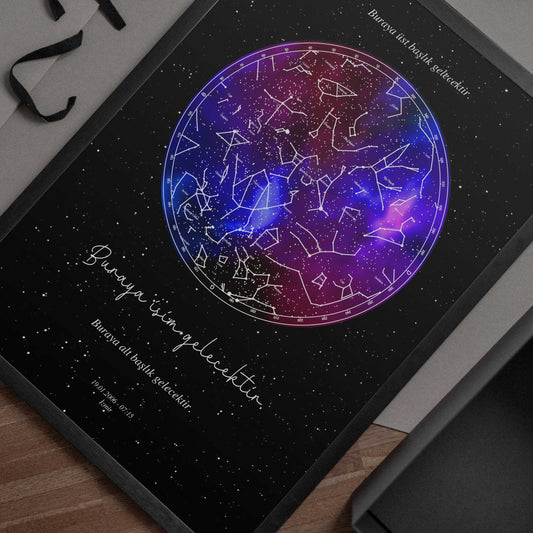 İNDİRİM 20%Kişiye Özel Çerçeveli Gökyüzü Haritası – Mavilim