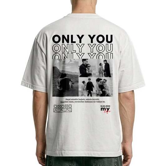 Kişiye Özel ONLY YOU Baskılı Beyaz Basic Unisex Tişört