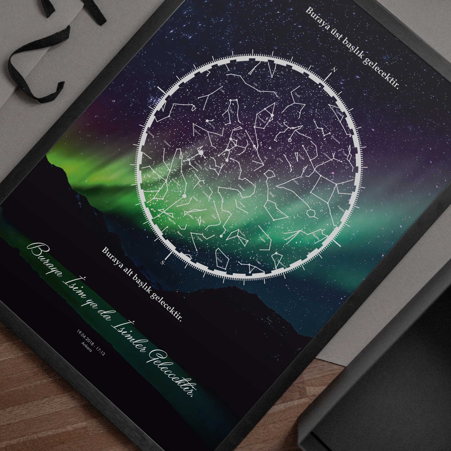Kişiye Özel Çerçeveli Gökyüzü Haritası – Işıklar