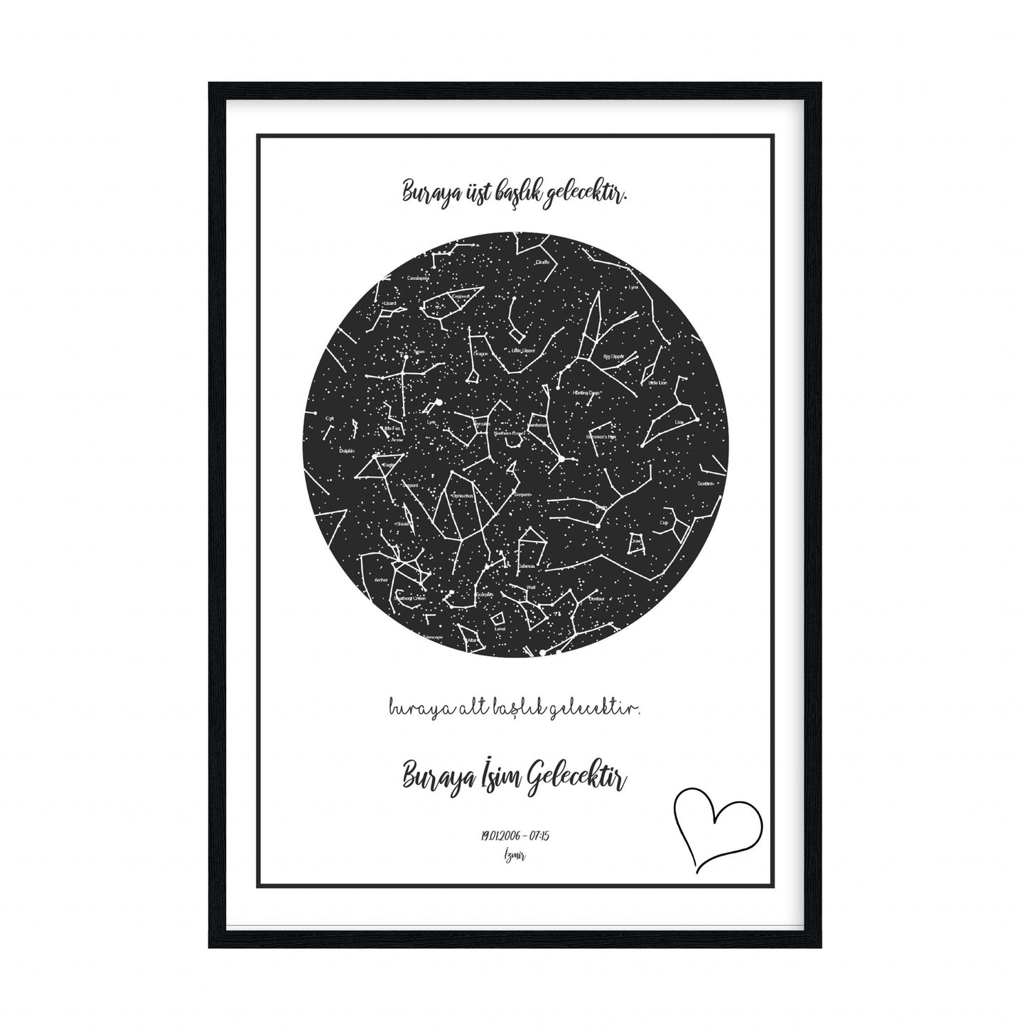 Kişiye Özel Çerçeveli Gökyüzü Haritası – Kalp Detaylı