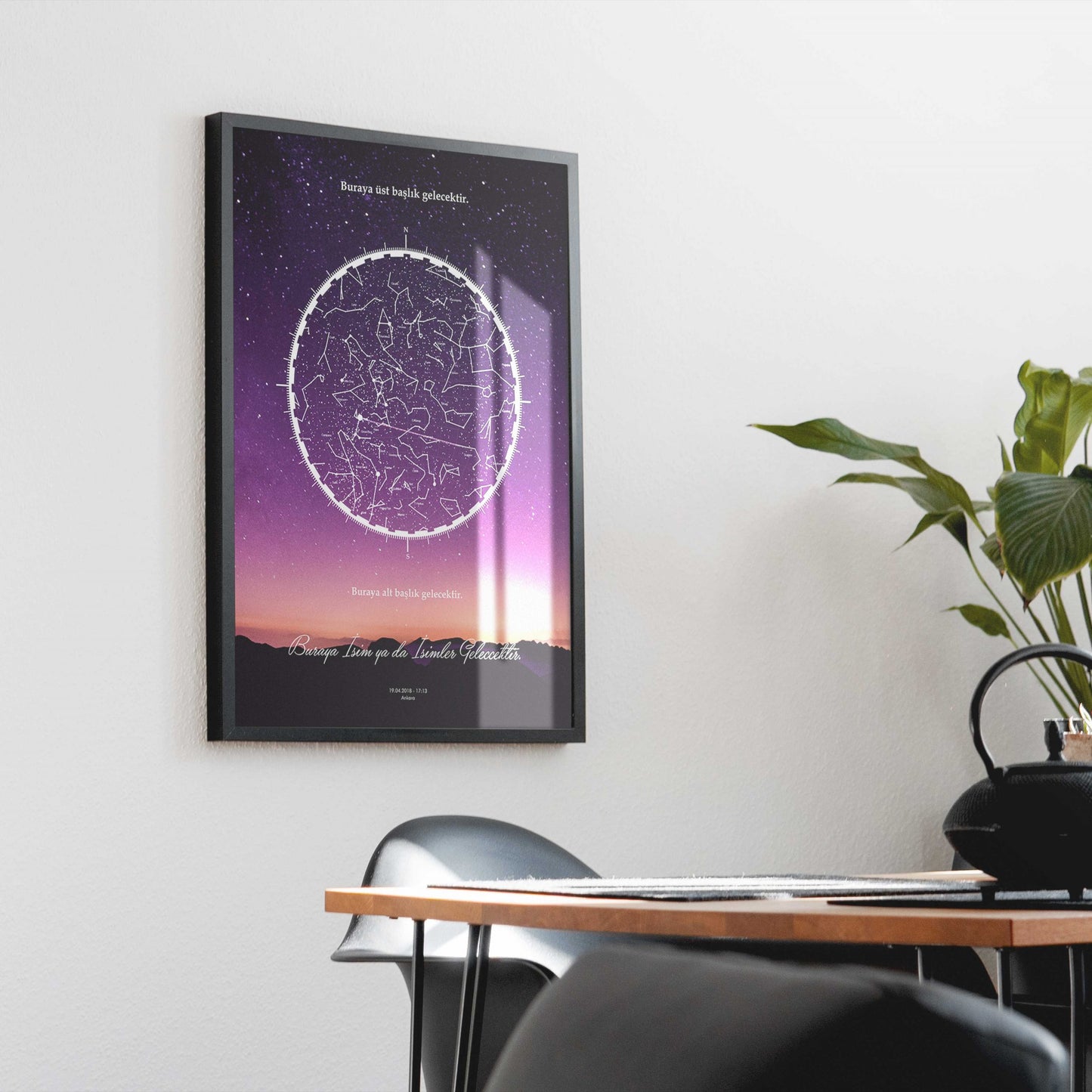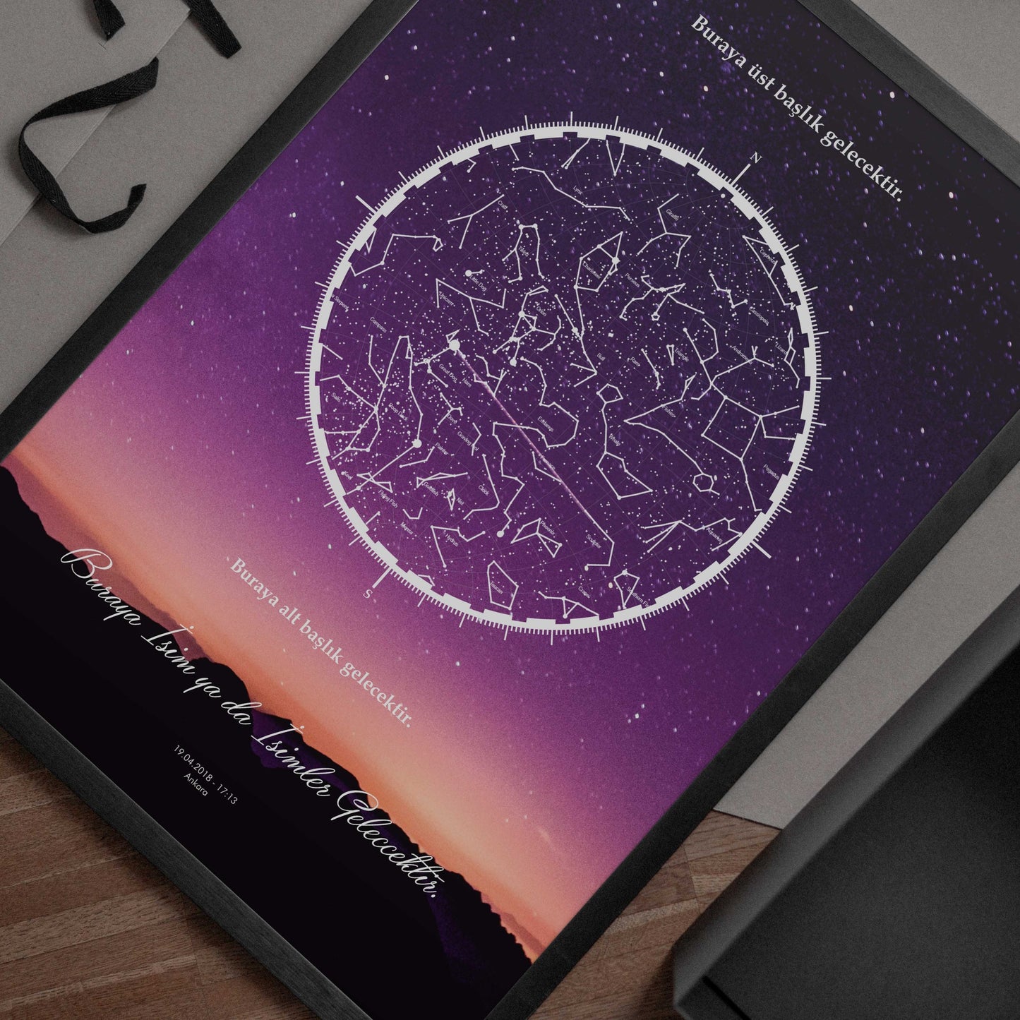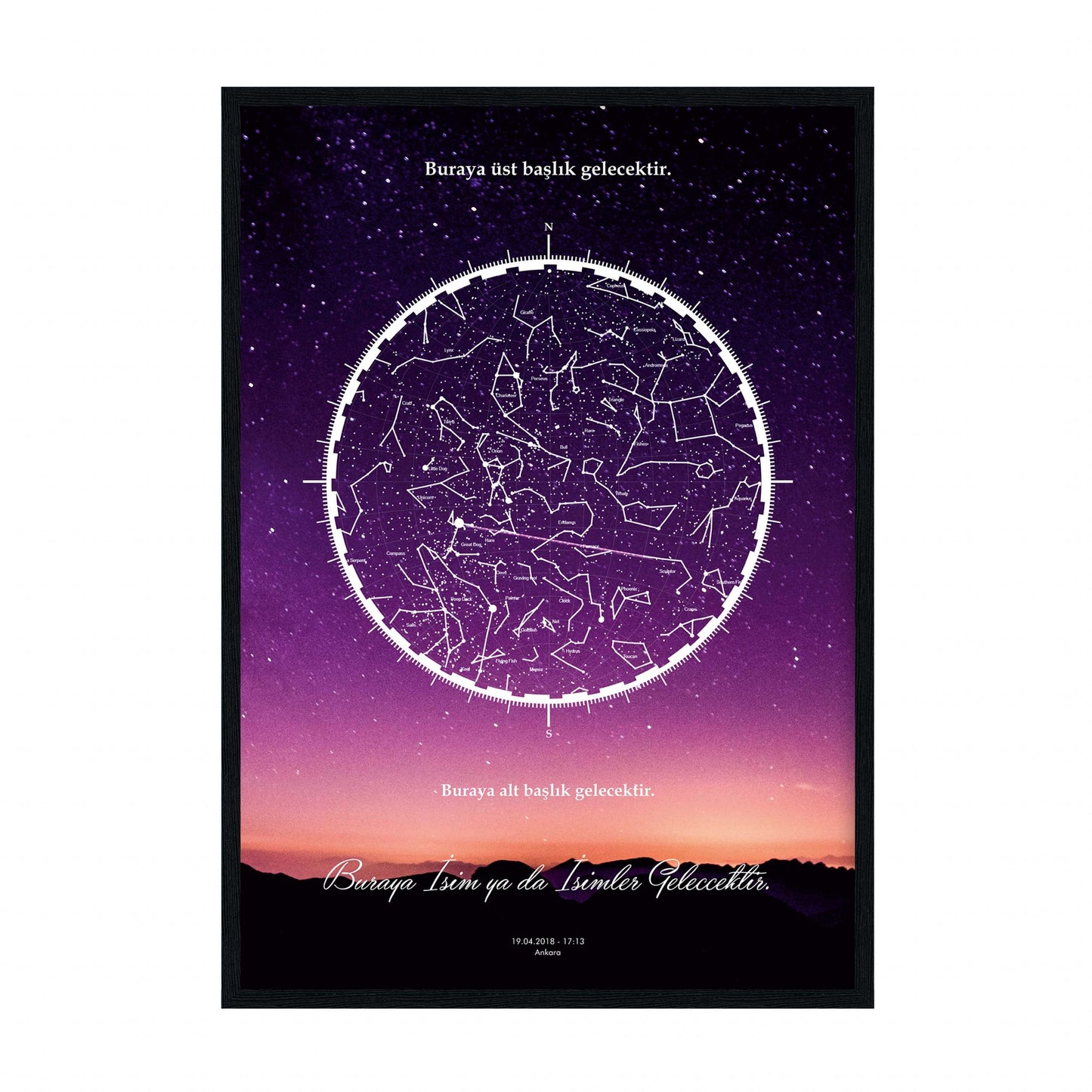 Kişiye Özel Çerçeveli Gökyüzü Haritası – Tozpembe