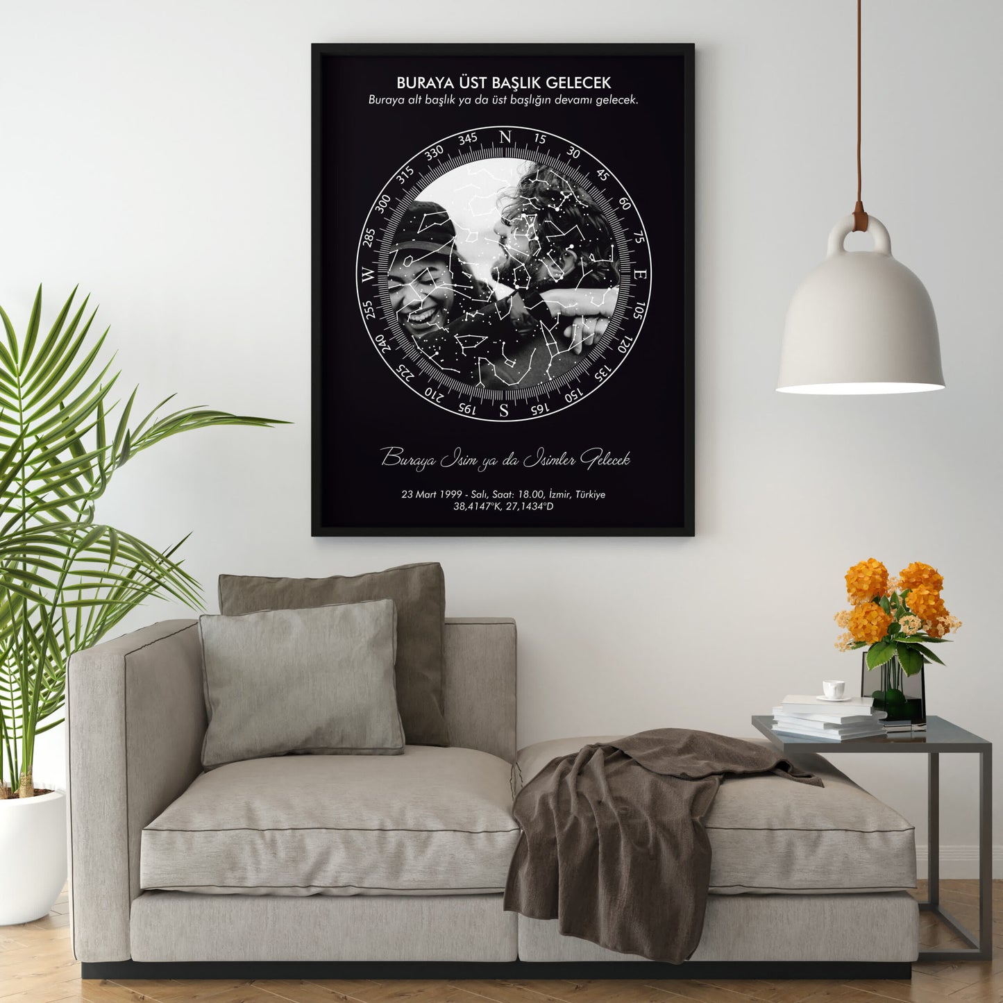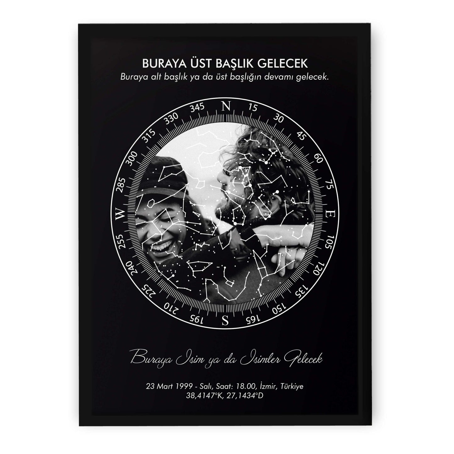 Kişiye Özel Fotoğraflı Gökyüzü Haritası – Pusula
