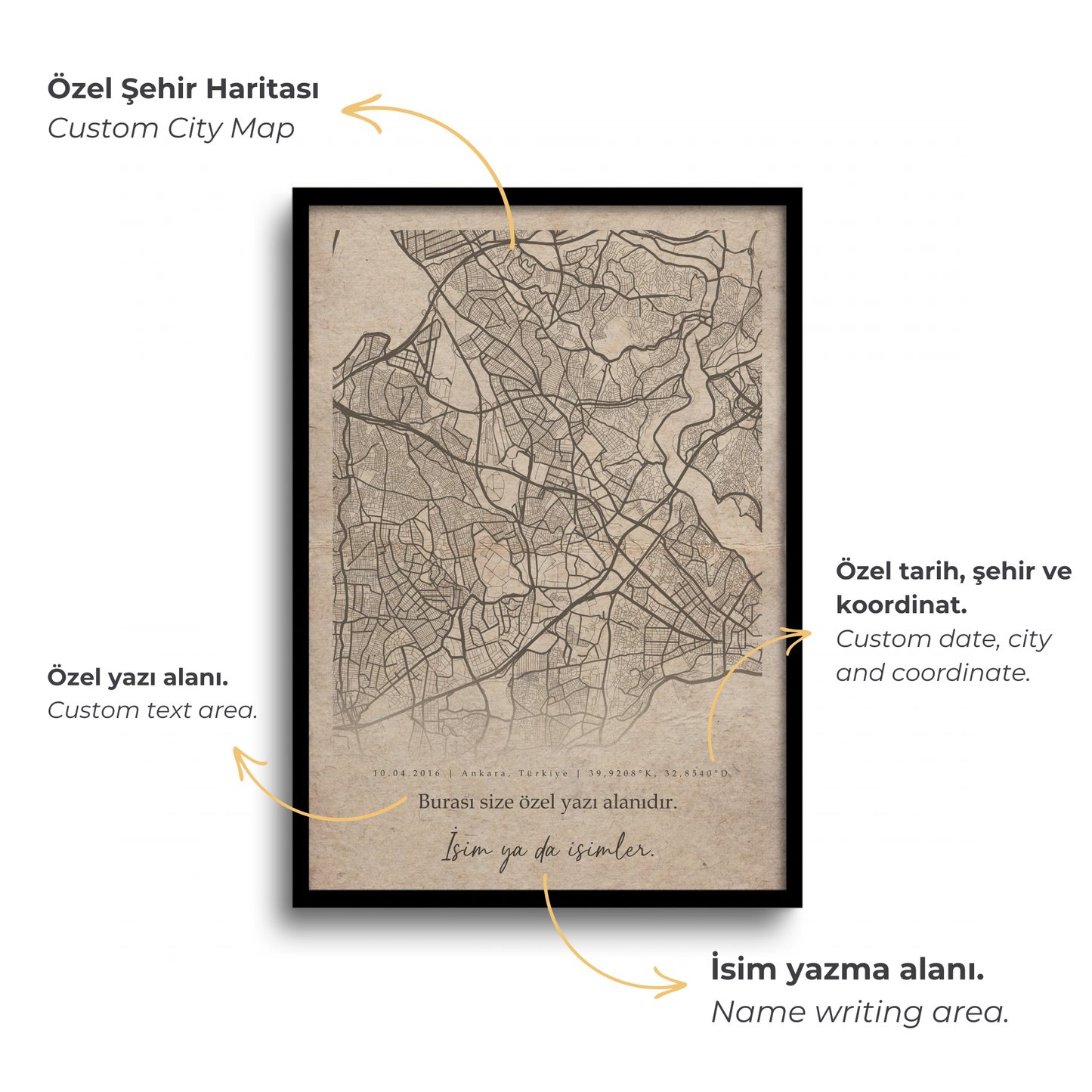 Kişiye Özel Klasik Şehir Haritası - Papirus