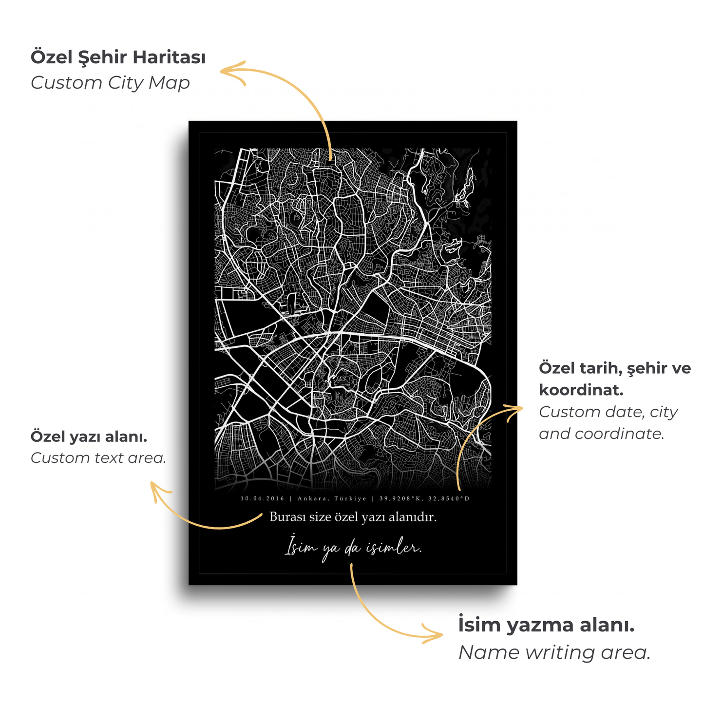 Gökyüzü Haritacısı markası altında satın alacağınız tüm çerçeveli ürünler profesyonel sanatsal çerçeve profilleri kullanılarak, siparişiniz sonrası size özel olarak hazırlanır.