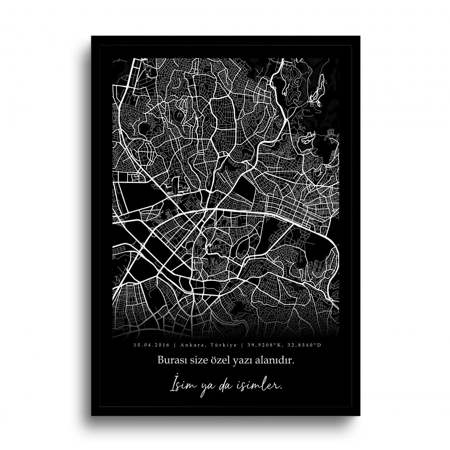 Kişiye Özel Klasik Şehir Haritası - Siyah